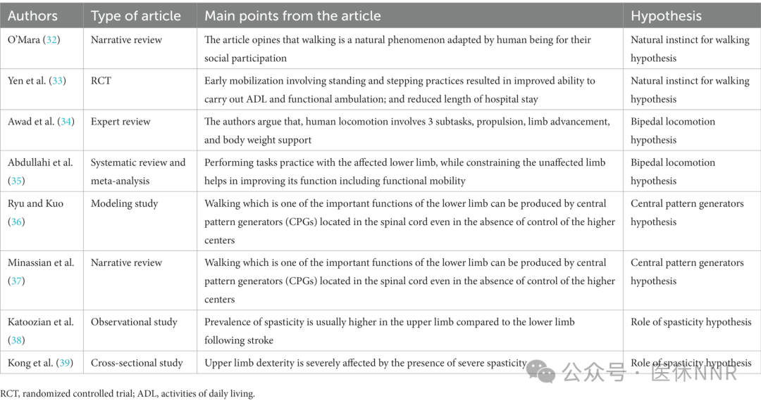 结果:搜索总共产生了 2,551 个匹配结果。然而,其中 51 个重复项被删除。在回顾相关文献后,我们提出了四个假设:步行本能假说、双足运动假说、中枢模式生成器(CPG)假说和痉挛假说对主题的作用。