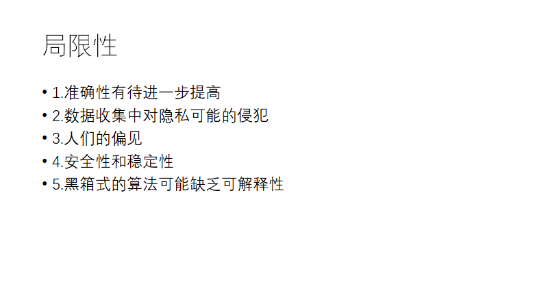 局限/缺陷:数据和隐私安全性,算法可靠性和可解释性,临床应用的评估